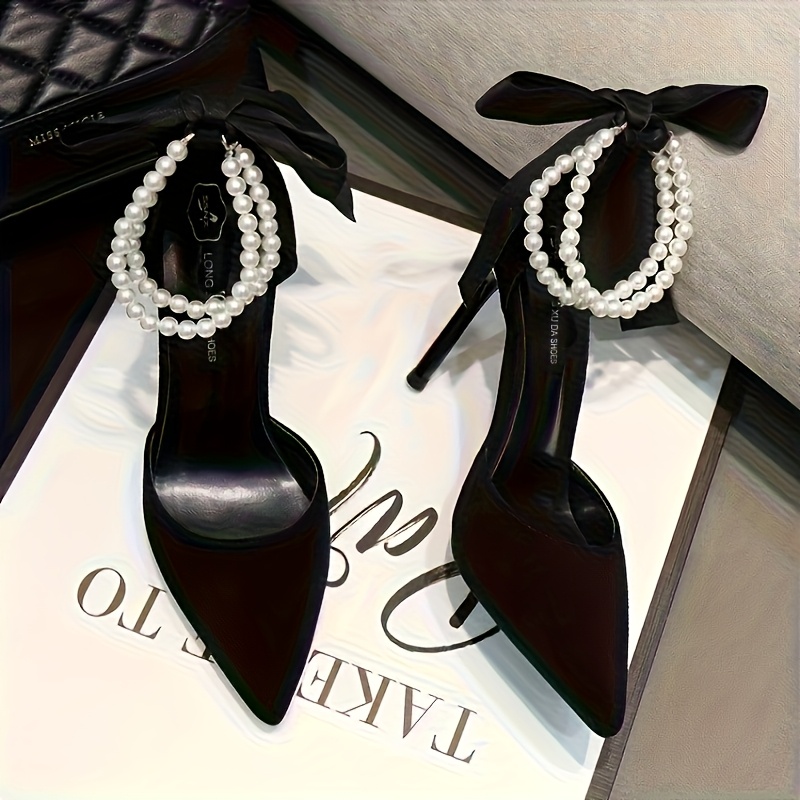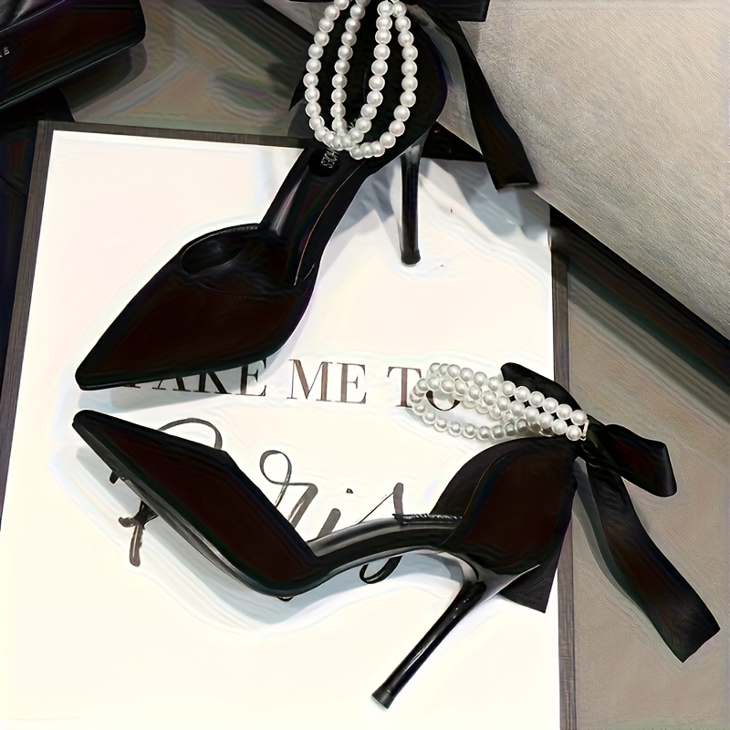 Exquisite Black Pointed - Toe High - Heel Sandals with Bow - Stiletto Design for Fashionable Footwear