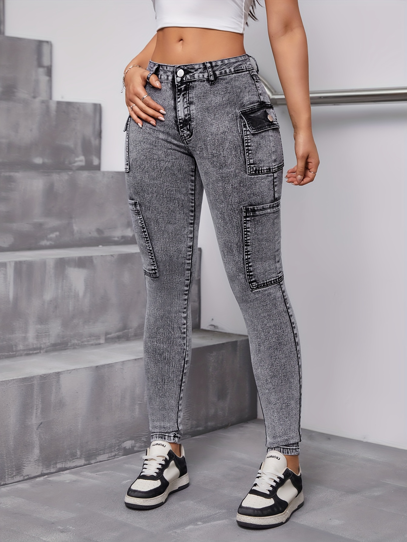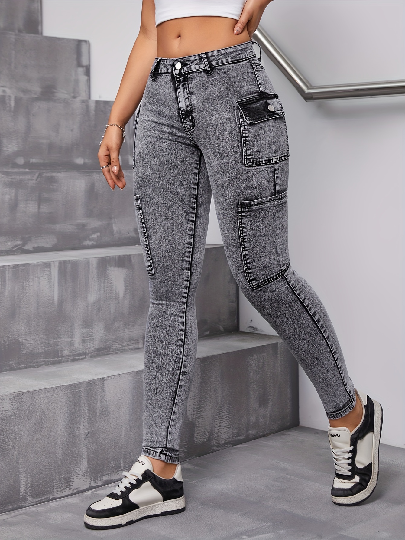 Jeans Femme Gris Style Snowflake Extensible Slim Polyvalent