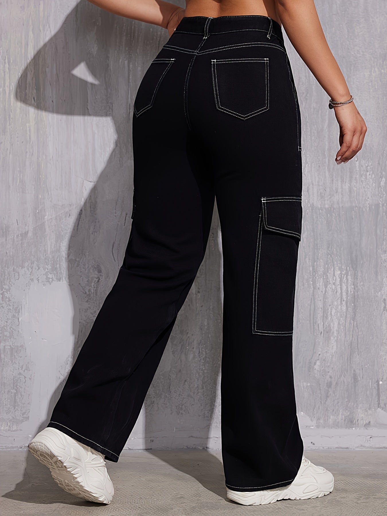 Jean cargo pour femmes - Pantalon de travail non extensible avec poches utilitaires, coupe droite ample, boutons, style décontracté et professionnel, toutes saisons