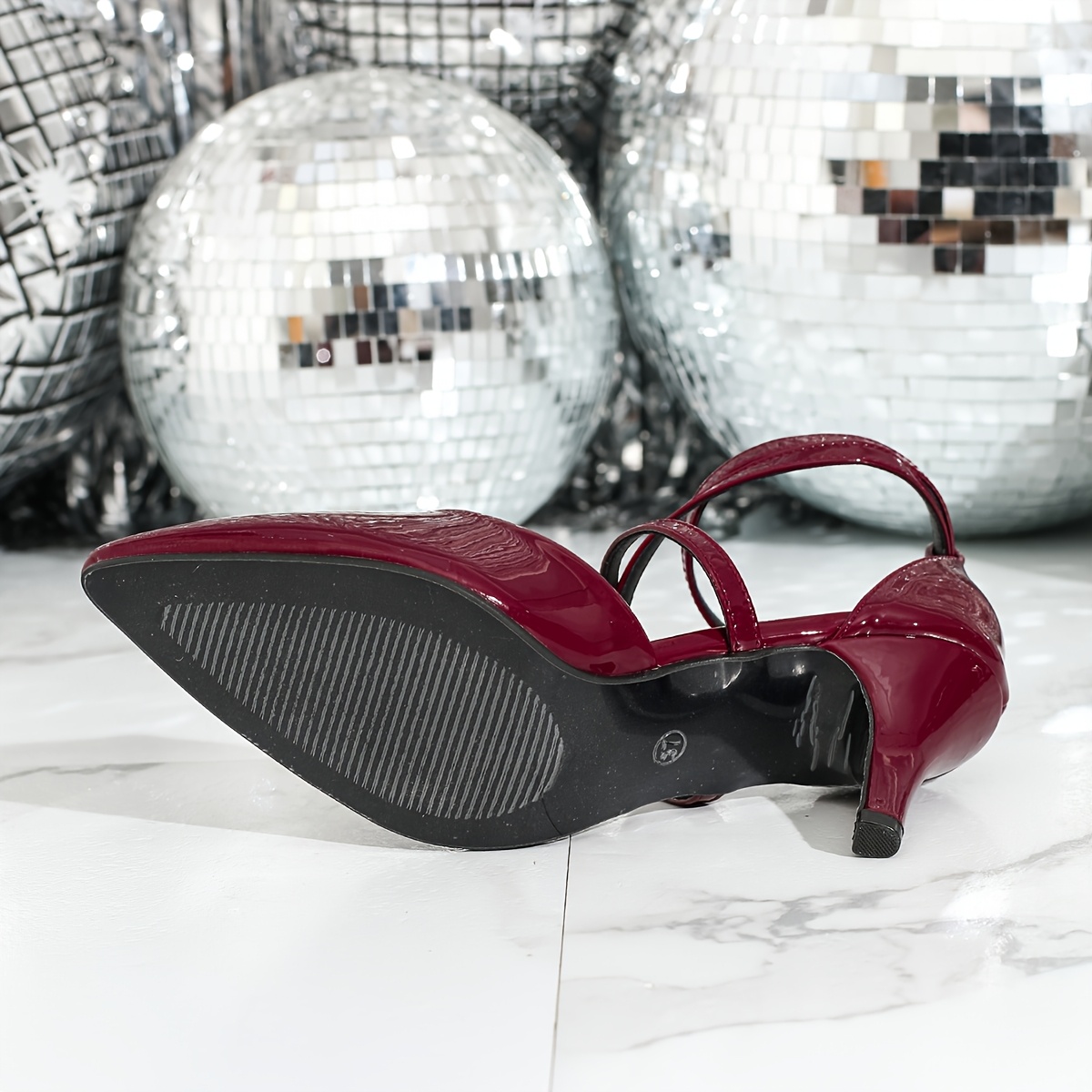 Escarpins Élégants Femme à Talons Aiguilles – Bout Pointu, Dessus PU Verni Bordeaux, Bride Boucle Bordeaux et Transparente, Semelle Intérieure Confortable en PU, Dessus et Doublure en PU