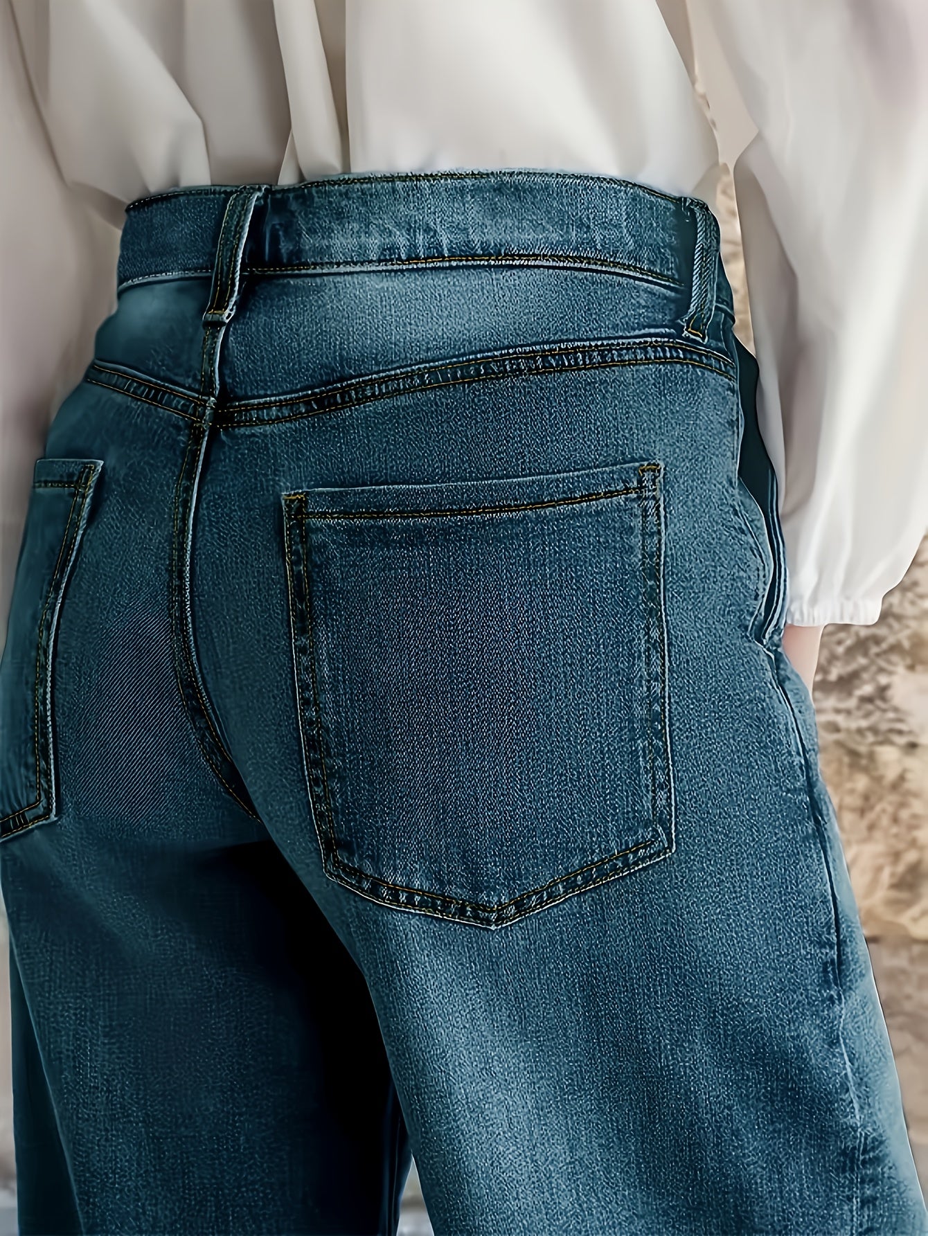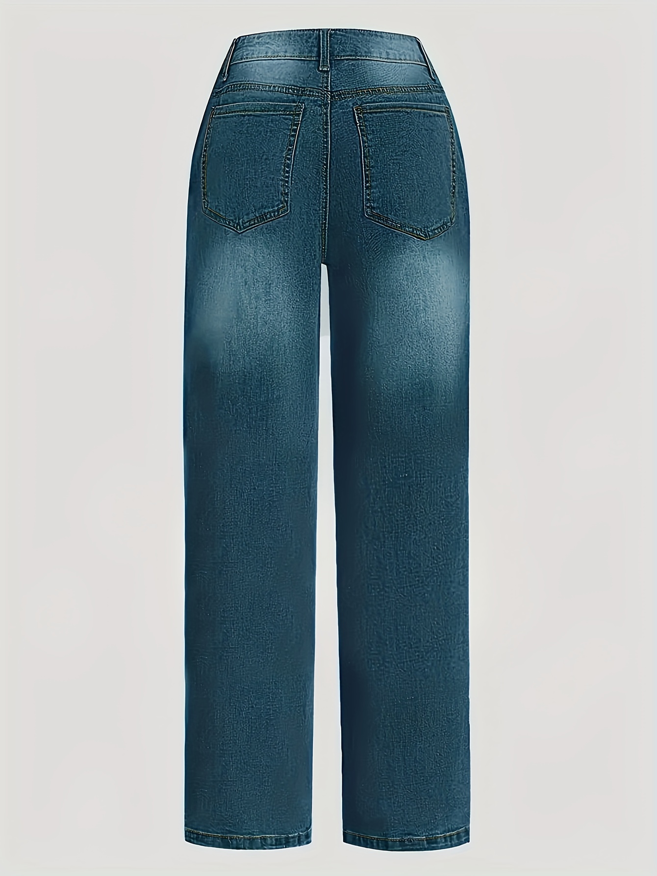 Jeans Femme Élégant Jambe Large Taille Mi-Haute Sans Ceinture Boutons Poches Durables Extensible Toute Saison Décontracté et Professionnel Bleu Lavable