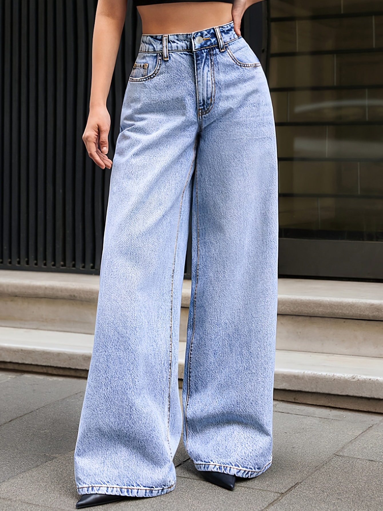 Jeans Femme Taille Haute Jambe Large Élégant Non Extensible Fermeture Zippée Toute Saison Décontracté et Formel Polyvalent Design Minimaliste