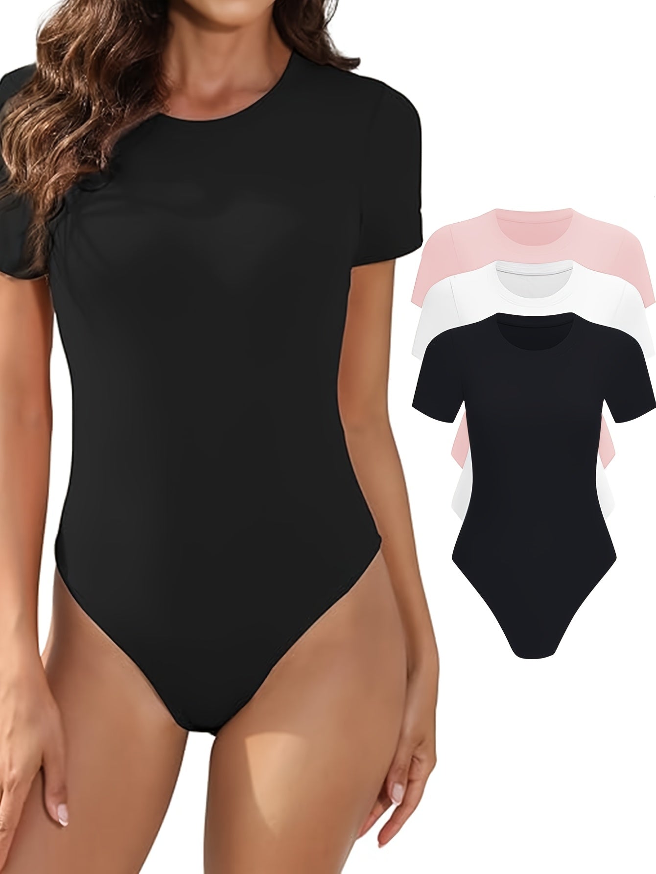 Lot de 3 bodys femme à manches courtes, col rond, coupe ajustée, basiques et confortables